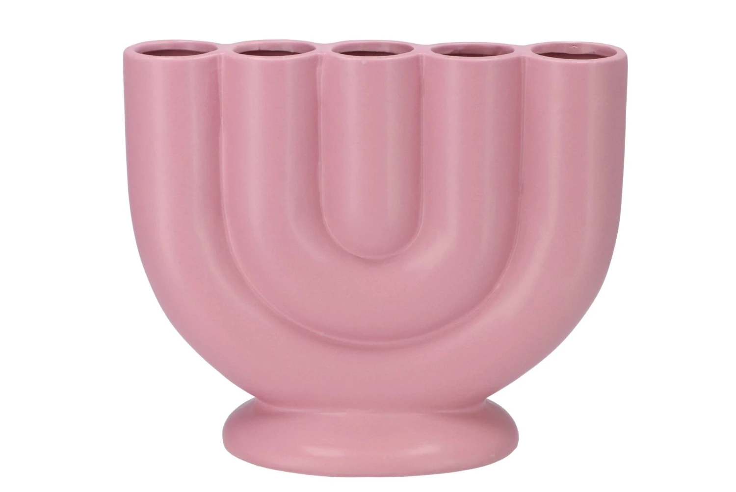 Bukan Roze Mat 5-tube Vaas 30x13x26cm