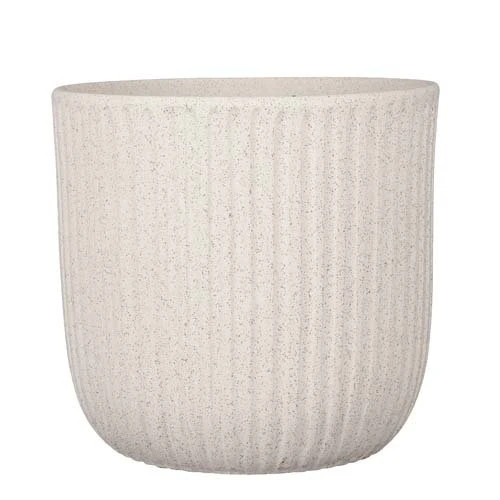 Geef jouw plant een mooie plek in huis met de Dante bloempot van Mica Decorations. De pot wordt gemaakt in Portugal, waar gebruik wordt gemaakt van hoogwaardige terracotta klei. Hierna is de pot geheel met de hand afgewerkt, waardoor elk item uniek is. Opvallend aan het verder strakke design zijn de verticale ribbels. Daarnaast heeft de bloempot een gespikkelde finish in een moderne, off white kleur. Mooi in elk interieur! De Dante bloempotten zijn verkrijgbaar in verschillende kleuren en maten. Dit grijze model is 27 cm hoog en heeft een diameter van 30 cm.