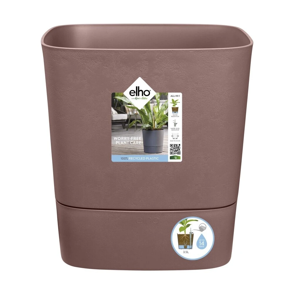 Vraag jij je wel eens af of jouw planten genoeg water krijgen, of ben je bang om juist te veel water te geven? Onze greensense aqua care kan jou helpen om ervoor te zorgen dat je planten altijd genoeg water hebben. Je vult het waterreservoir bij wanneer de watermeter dat aangeeft en je bent klaar om van je favoriete planten te genieten! Het enige dat je ze verder hoeft te geven is wat liefde. Bij deze pot zit een plug, zodat je hem zowel binnen als buiten kunt gebruiken. En de geïntegreerde wieltjes maken de pot eenvoudig te verplaatsen. Je kunt ervan op aan dat deze pot met liefde voor natuur is gemaakt. Zo is hij gemaakt van gerecycled plastic, geproduceerd met windenergie van onze eigen windmolen en ook nog eens volledig recyclebaar. Plantverzorging makkelijk gemaakt Alle greensense aqua care potten hebben een eenvoudig watersysteem met een reservoir van 8 liter. De watermeter geeft precies aan wanneer je het water bij moet vullen. Je plant gaat vanzelf het opgeslagen water gebruiken wanneer dat nodig is. Zo weet je zeker dat jouw plant nooit dorst heeft. Ideaal voor een hete zomer of wanneer je op vakantie gaat. Hierdoor kun jij nog langer van je mooie groene planten genieten! Gebruik ‘m waar je wilt Bij alle greensense aqua care potten vind je een overlooppijpje in het waterreservoir. Daardoor kan de pot een grote hoeveelheid water vasthouden. Gebruik je de pot buiten? Haal dan de plug uit de onderkant van de pot. Zo overstroomt het reservoir niet na een forse regenbui. Binnen gebruik je de plug wel om ervoor te zorgen dat er geen water op je vloer terecht komt. Zowel binnen als buiten is de pot makkelijk te verplaatsen door de geïntegreerde wieltjes. Het is een blijvertje Deze kwalitatieve potten zijn gemaakt van 100% gerecycled plastic. Ze kunnen dus tegen een stootje. Deze potten zijn vorstbestendig en verkleuren niet. Daarnaast kun je het waterreservoir gemakkelijk losmaken van de pot, zodat je deze schoon kunt maken.