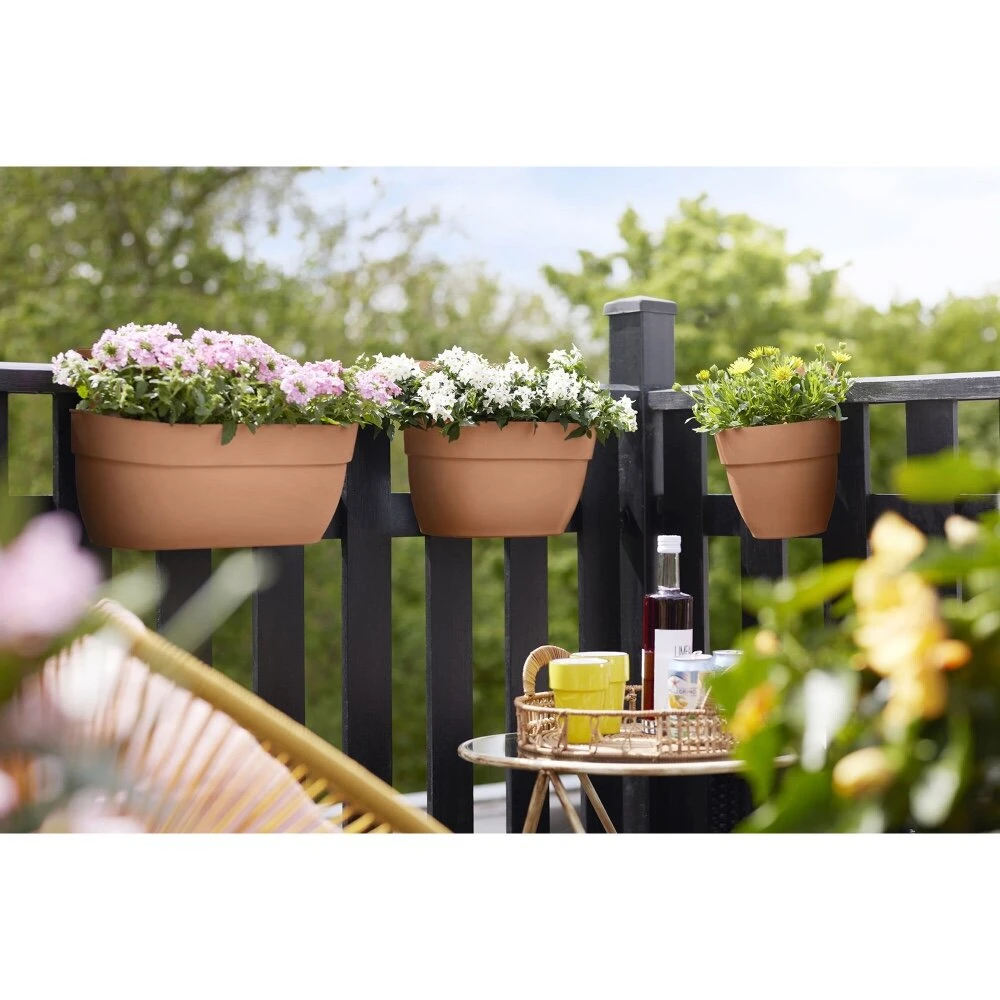 Wil jij meer groen op je balkon brengen? Dan is de vibia campana easy hanger iets voor jou. Je kunt deze balkonbakken op bijna elk balkon gebruiken, want ze passen op railings met een breedte van maximaal 6,5 cm. Dankzij het overlooppijpje kun je langer genieten van het groen om je heen, omdat overtollig water weg kan. En je kunt ervan op aan dat deze pot met liefde voor natuur is gemaakt. Zo is hij van 100% gerecycled plastic, geproduceerd met windenergie van onze eigen windmolen en ook nog eens volledig recyclebaar. Nooit te natte voeten Alle vibia campana balkonproducten hebben een overlooppijpje. Hierdoor kan overtollig water weglopen, waardoor je planten of bloemen nooit te natte voeten hebben. Ideaal voor na een forse regenbui of als je ze zelf net iets te veel water hebt gegeven. Past bij iedere stijl De vibia campana easy hanger is een mooie aanvulling op jouw balkon door zijn zachte, ronde vormen en een gave, natuurlijke textuur. Ook zijn ze beschikbaar in vriendelijke en trendy kleuren, passend bij iedere balkonstijl. Zo kun je rust creëren met bijvoorbeeld antraciet of zijdewit, of meer kleur op je balkon brengen met bijvoorbeeld honinggeel. Hangt altijd stabiel Door de vlakke achterzijde hangt de vibia campana easy hanger altijd stabiel en mooi recht. Daardoor kun jij zonder zorgen genieten van meer groen in je leven.
