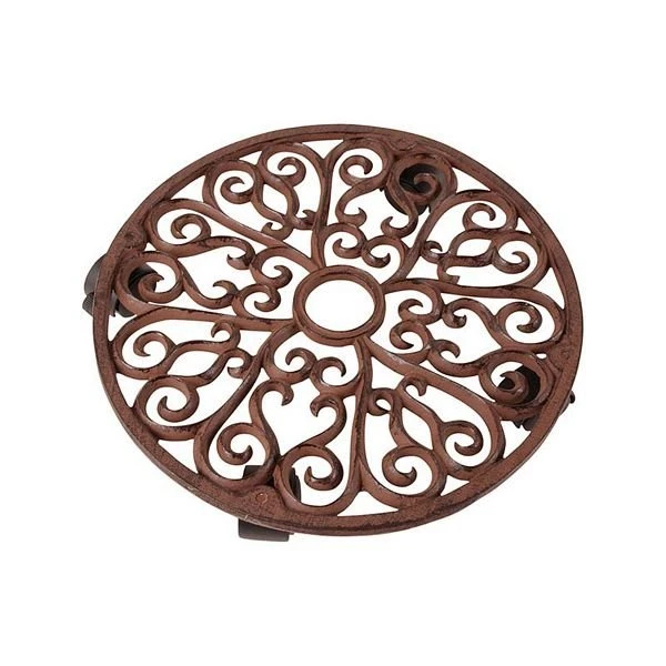Ronde planttrolley van gietijzer voorzien van zwenkwielen maat L